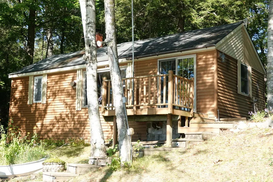 Cozy 3 bedroom, all season cabin with a knotty pine interior. The living room has wood floors and a wood burning stove. The kitchen features knotty pine cupboards, vinyl flooring and a patio door to the deck overlooking the lake. This is furnished and ready to move into. It also includes a wood shed, fire pit, a beautiful patio and a 16X24 detached garage. Recent improvements is a split unit heat and air conditioning unit.