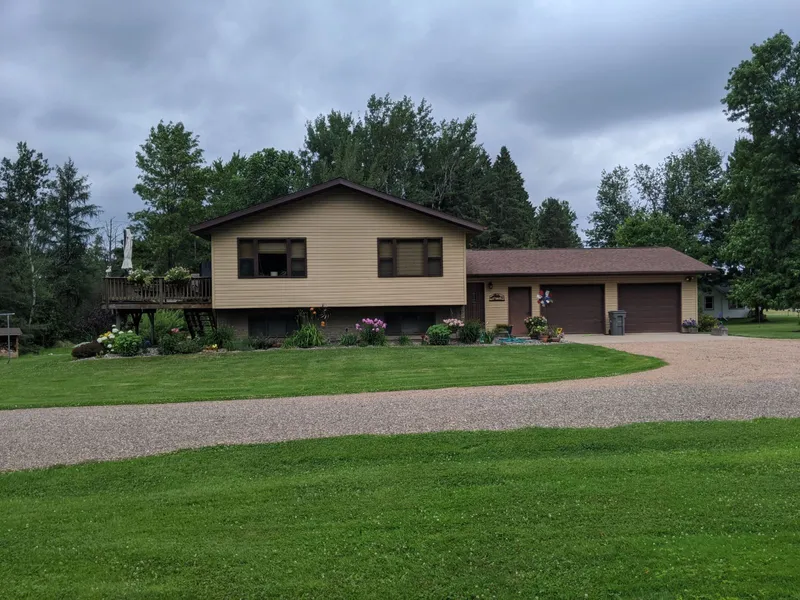 Nestled on 8.15 acres this bi-level home offers the perfect blend of modern convenience and peaceful living. The upper level features an inviting open-concept living and dining area, complemented by a cozy kitchen equipped with ample counter space. The upper level includes two generously sized bedrooms, laundry and a spacious bathroom. Downstairs has a versatile family room that includes a bar area perfect for entertaining. Also downstairs is the master bedroom, with a large closet and an additional bathroom for added convenience. Outside, you'll find a private backyard ideal for outdoor gatherings or gardening, with room to customize to your liking. The property also includes a two-car garage and a driveway with plenty of parking. Located on the outskirts of town, this home provides the space of rural life while still being close to local amenities and schools.