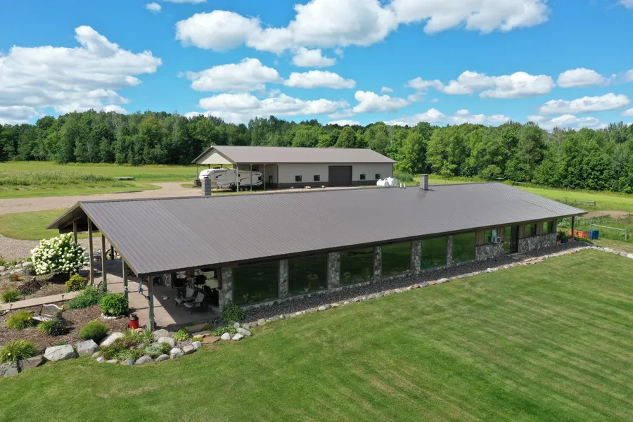 Custom built 2,400 sq. ft. ranch home with +/-60.25 acres located at the end of dead end road. Knotty alder kitchen with self closing doors, breakfast bar, tiled back splash, ceramic tiled floors and vintage wood cook stove. Dining room with vaulted ceilings and patio door to covered porches. Living room with (7) 8x6 windows with southeast exposure overlooking the +/-30 organic tillable acres. Two oversized bedrooms with walk in closets. Rec room for entertaining. Large cellar with barn style door for can goods and storage. 3/4 bathroom with tiled shower. Laundry room with storage area and plumbed for a wash sink. 3 covered porches. Intensive landscaping, numerous gardens and apple trees. 40x32 heated attached garage. 88x48 metal pole shed with a concrete floor, 12' ceilings, 3 overhead doors and a 48x24 overhang. The +/-60.25 acres makes an excellent hobby farm for the green thumb and endless hunting opportunities. Drilled well with added hand pump for exterior use and (2) 2,000 gallon holding tank septic system.