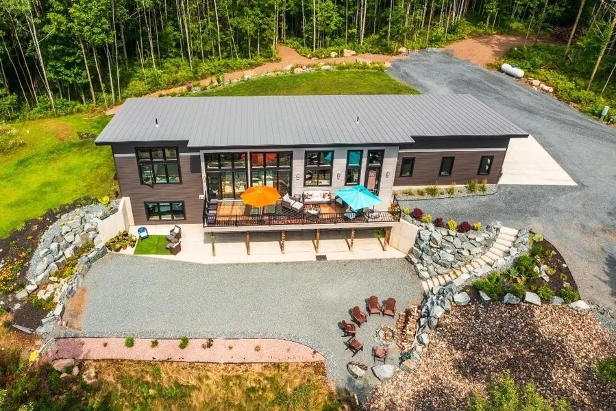Imagine waking up each morning in a home that truly inspires. This Mid-century modern–inspired residence blends thoughtful design, high-end finishes, and exceptional craftsmanship. Nestled on 33.75 wooded acres along Washington Creek, it offers a peaceful retreat close to multiple lakes—perfect for outdoor enthusiasts. From the moment you enter, the open-concept layout and striking architectural details will captivate you. The great room boasts cathedral ceilings and expansive windows, filling the space with natural light, while patio doors create a seamless indoor-outdoor connection to a 40’ composite deck overlooking the pond, and professionally landscaped grounds. The upscale kitchen is a chef’s dream, featuring a spacious island, abundant cabinetry, quartz and granite countertops, a walk-in pantry, and a full coffee bar. Commercial-grade appliances, including a 60” double oven and co...