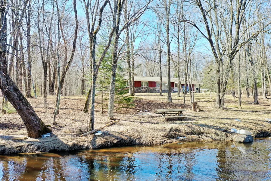 Exceptional 3 bedroom, 1.5 bath riverfront home with over 1,650 feet of frontage on the Black River. Custom oak kitchen with Corian countertops and a pantry. Dining room with river views. Spacious living room with a fieldstone fireplace featuring antique hand hewn timbers. Full updated bathroom with tub and walk-in tile shower. Sunroom with access to a stamped concrete patio. Covered porch overlooking the river. Attached garage and 2 sheds. Secluded setting on +/-17.2 wooded acres with mature maples and abundant wildlife. The refrigerator, stove, dishwasher, washer, dryer, chest freezer, window coverings, hutch and iron filter are included in the sale.