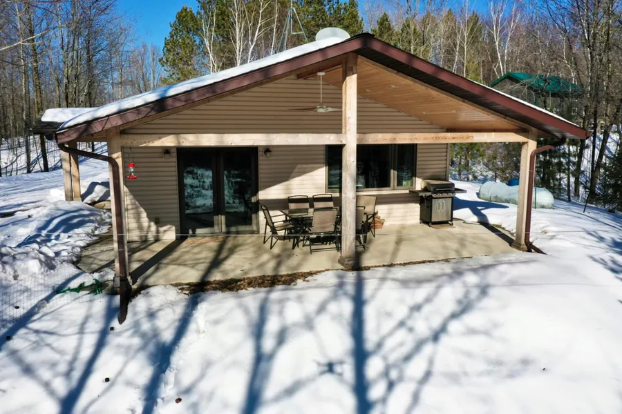 Modern 2 bed, 1 full bath home located on Lake Tiffany with +/-4.4 wooded acres. Kitchen with white cabinets and island. Living room with electric fireplace, southern exposure and patio doors leading to the covered porch. Laundry room with a wash sink. Attached two car garage. Located at the end of a dead end road with +/-625 feet of frontage on semi-private Lake Tiffany and +/-200 feet of frontage on the Washington Creek. The refrigerator, stove, washer, dryer, electric fireplace, tv & mount in bedroom, (2) window a/c units, iron filter, storage shed, window treatments, lp tank, dock and paddle boat are included in the sale price.