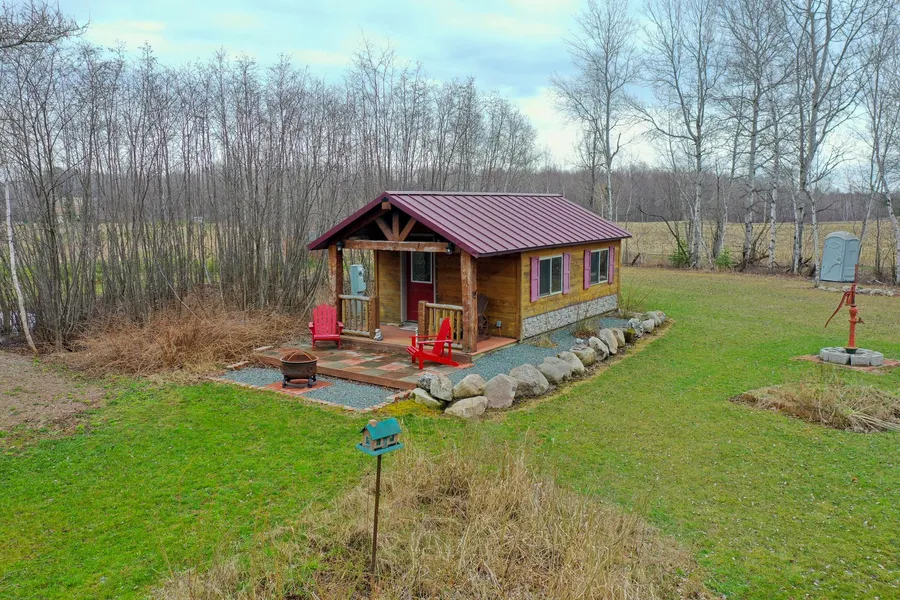 Affordable recreational cabin on +/-20.63 mainly wooded acres. Cabin with front porch, electricity, well and porta potty. Open concept design and completely furnished. Pond and trails throughout. Over 5,000 trees planted. Location offers frontage on Timber Drive as well as North Avenue. The property is also located close to Timms Hill, several area lakes and streams, public hunting grounds and miles of motorized and non-motorized trail systems. The cabin and all furnishings, storage shed, carport and porta potty are included in the sales price.