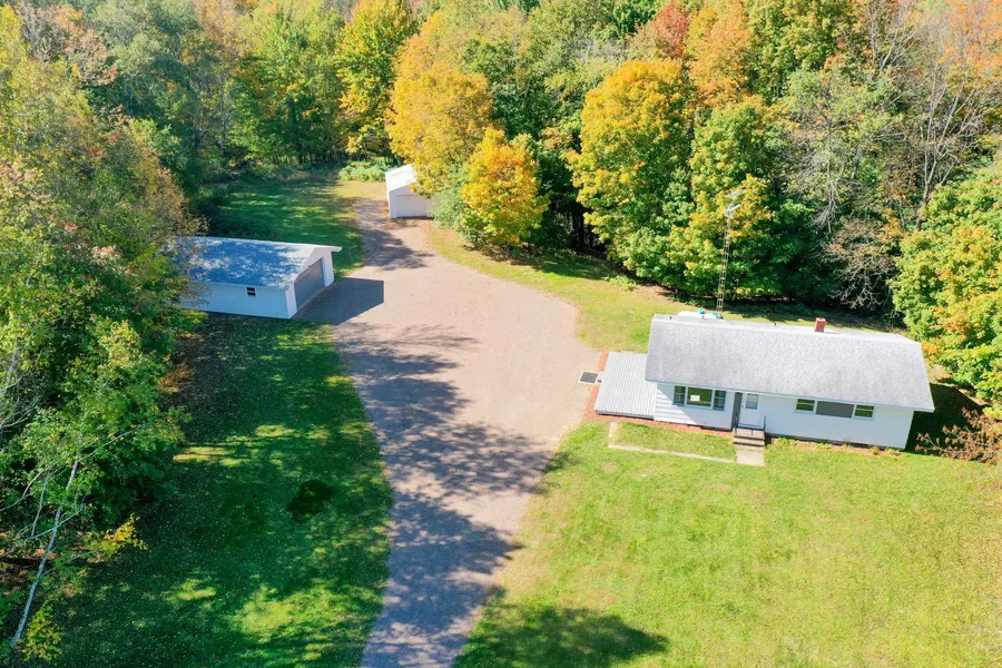 Modernized 3 bed, 1 bath ranch home with +/-5 heavily wooded acres. Kitchen with oak cabinets and dining. Living room with front yard views. Three main floor bedrooms with original hardwood floors. New flooring, paint and interior doors. Full concrete basement. 34x24 detached garage and 24x18 detached garage. Deck system overlooking backyard with mature trees and trail system. Located at the UTV/ATV route and within 2 miles from the Taylor County Forest. The stove, refrigerator, dishwasher, washer, dryer and window treatments are included in the sale price.