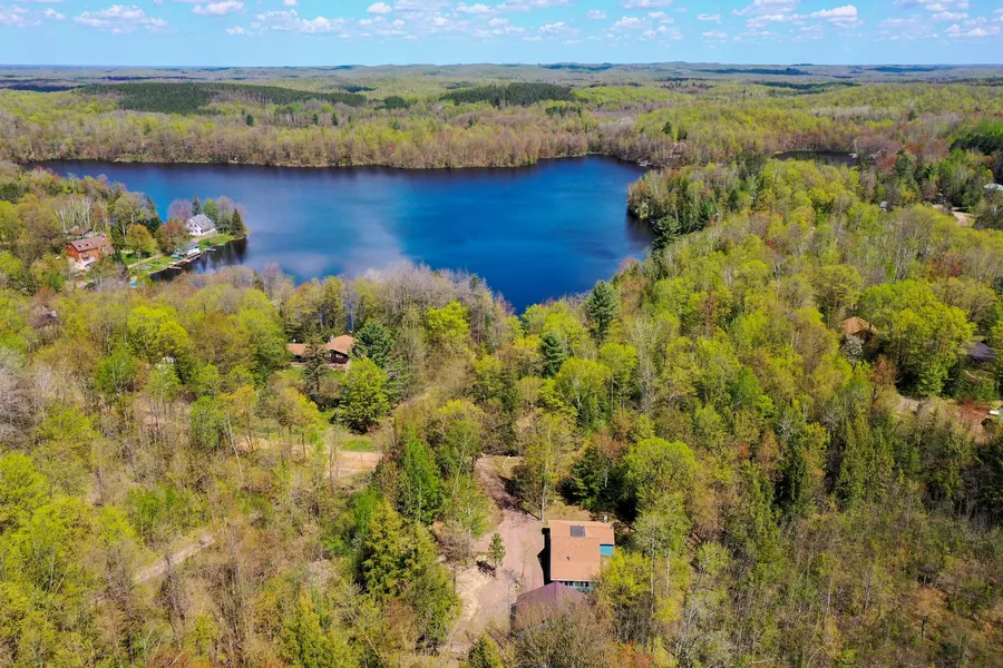 Off Lake 3 bed, 1 full bath home located between the Harper Lakes. Great room with kitchen, gas fireplace and cathedral ceilings. Living room with view into great room. Two main floor bedrooms and full bath. Open concept loft. Three season room with wooded backyard views. 34x24 detached garage with stone accents. 24x16 concrete slab ready to be built on. Easy walk to the beach on South Harper Lake. Located close to Forest Springs, Timm's Hill Recreational Area and fisheries. The refrigerator, stove, microwave, window treatments and lp tank are included in the sale price.
