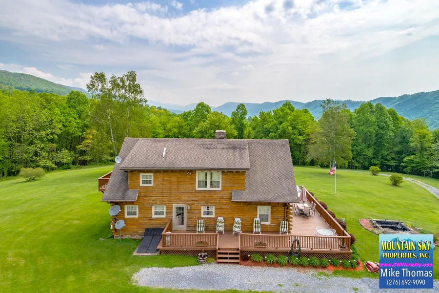 Custom Built Log Home situated perfectly on 35 acres to enjoy the mountains. Roughly 5 acres are cleared around the house allowing plenty of natural light throughout the house. The remaining acreage is woods providing the privacy and wildlife most people move to the mountains for. The pine logs are hand peeled with tongue and groove from upstate New York. The living room, dining room and kitchen are open with cathedral ceiling and a large stone fireplace. The kitchen offers countertop seating, an abundance of cabinets and an island with oven/range combo. The master bedroom is on the main level with his and her closets. Laundry room is also on the main. Upstairs is an open loft with a sitting area, bedroom, full bathroom, 2 closets and balcony to enjoy the mountains. Downstairs is a full basement which half has been finished as a family room/bedroom, brick fireplace, woodturning stove and...