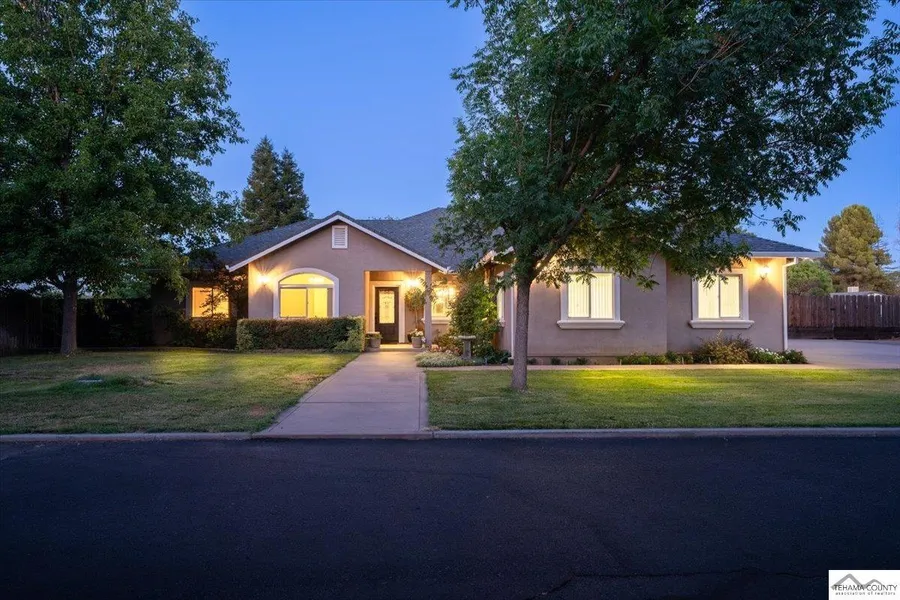 Exquisite and Private Los Molinos Estate! Discover the perfect blend of luxury and comfort in this stunning 2030 square foot home. This spacious 3-bedroom, 3-bathroom retreat is nestled in a beautifully landscaped setting. The Primary Bedroom features a jacuzzi tub and a lovely, designed Ikea closet along with the coffered ceiling. A gorgeous inground pool with a large, covered patio is perfect for poolside relaxation and entertaining. The pool area is framed by a white fence with an arbor, and the concrete deck is elegantly lined with brick. Entertain in style with a covered outdoor kitchen, complete with a sink, refrigerator, stove, and marble-type counters. The area is equipped with Bose speakers throughout, making it ideal for gatherings. Inside, you'll find Tile & laminate floors throughout, solar tube lighting and dual pane windows ad to the natural light the home exudes, cozy up t...