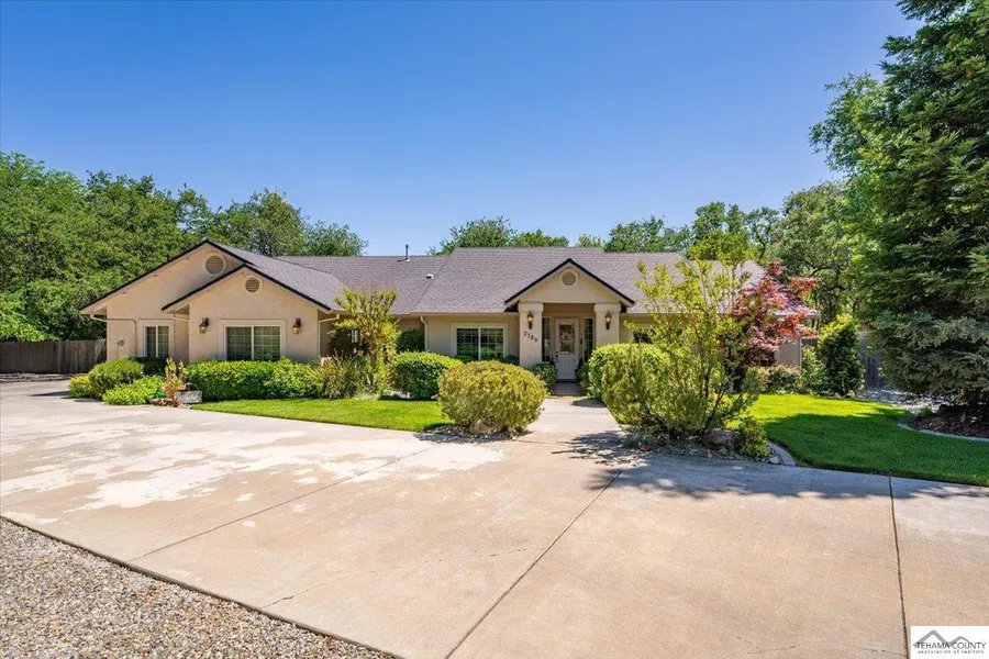 This exquisite estate beckons to those w/ discerning tastes, offering a fusion of sophistication and comfort that defines upscale living. Nestled on a secluded 1.5-acre parcel, this meticulously landscaped sanctuary ensures privacy and tranquility with walking trails and a private waterfall. If you love Gardening, this is a must see. Beyond the elongated driveway entrance lies a meticulously maintained oasis boasting a wealth of amenities tailored for the most distinguished clientele. Bask in the convenience of sustainable living with your own solar system, ensuring energy efficiency without compromising on comfort. With dual air conditioning units, maintaining the perfect climate is effortlessly achieved, ensuring year-round comfort in every corner of the home. style through the expansive three-car garage or utilize the ample RV parking area, providing ample space for all your vehicles and outdoor toys. Entertain guests in grandeur with the integrated sound system, seamlessly extending from the interior to the sprawling oversized covered patio. Boosting a split floor plan, this 3-bedroom, 3-bathroom, including two lavish executive suites, and multiple walk-in closets, this home offers unparalleled versatility to suit your lifestyle. An inviting office space with high-speed internet, adorned with double entry doors, presents the perfect opportunity for a guest room or additional workspace. Prepare culinary masterpieces in the gourmet kitchen, outfitted with granite countertops and an island cooktop crowned by a stainless-steel hood. Plenty of storage with custom cabinetry and a walk-in pantry. Whether hosting extravagant holiday gatherings or intimate soir?es, the open-concept design seamlessly blends the kitchen, formal dining area, and living spaces, fostering an atmosphere of comfort and warmth. Discover the charm of Red bluff from its captivating local businesses, delightful dining, vibrant festivals, PRCA Rodeos, and outdoor adventures.