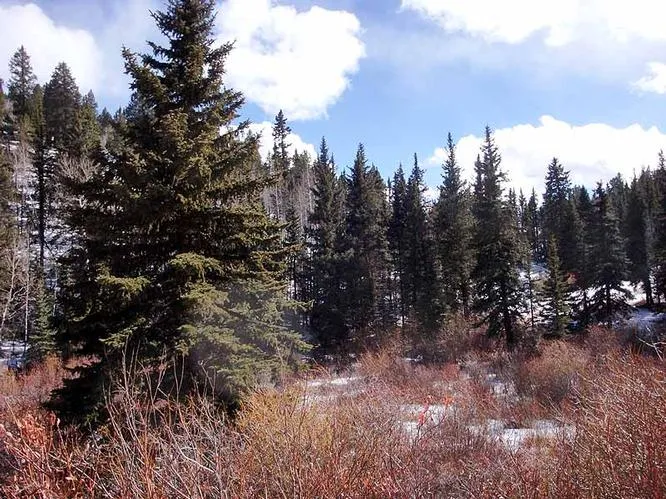 This property is heavily wooded with pine, spruce and aspen. There is a creek that winds over 300 feet through the lush valley. Power and phone is easily available. Good year-round access. Only $25,900.