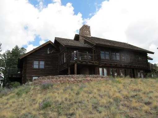 Colorado lodge style log home for sale on 70 private acres with panoramic views of the Rocky Mountains . This executive home is located only 42 miles west of Co. Springs in Teller County ,Colorado and just 5 miles from historic Cripple Creek. The custom log home was built in 1985 and has been used as a private retreat as well as a corporate retreat. It is ideally situated on a spectacular mountain top parcel of land with a perfect mix of aspen, pines and fir trees surrounding beautiful mountain meadows, with amazing views of the Sangre De Cristo Mountains, the Collegiate Peaks, Continental Divide, Pikes Peak, and Mount Pisgah. This ranch is located in productive elk and deer country and near major recreation areas. Only 40 minutes to fishing in Eleven Mile Canyon and nearby to Eleven Mile Reservoir. It is also only a 10 minute drive to go hunting in the nearby BLM lands with their well e...