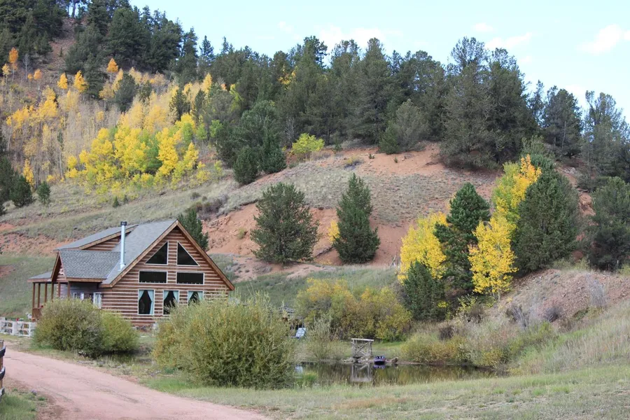 For the cowboy in all of us! Beautiful log home on 18 acres completely fenced with horse facilities, stream and pond! This unique property zoned A-1 is ready for your horses or other livestock. Fantastic 5 stall drive in barn with huge workshop and hay storage. There is also a loafing shed deep enough to park 5 vehicles, frond pen, corrals and plenty of pasture. Home features tongue-n-groove vaulted ceilings, granite kitchen and baths and covered deck. Youll love the master suite with huge walk-in closet and luxurious 5 piece bath with stone walk-in shower, jetted tub and double vanities. Master also walks out to private deck area. There is an additional older cabin with power, wood stove, kitchenette and bath for guests. Year round stream runs through the pasture. Borders National Forest too. Located just off Hwy 67 4 miles from Divide. There is still a small amount of finish work to be completed in the home but everything is ready for your ranch in the mountains. This property is also located on a county road just down from national forest, ride your horses to a ton of trails right from your property. Almost too good to be true!