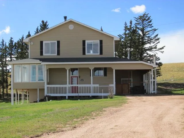Reminiscent of American Farmhouse style exteriors, this freshly renovated historic beauty may have B&B potential! Classy new outside paint calms the senses while the playful, trendy, new paint & tile inside make you think you just stepped into the provincial French or Italian countryside! Numerous south-facing windows & solarium bring the breathtaking post-card view of Pikes Peak & Rampart Range right into your rooms & warm the home with abundant passive solar heat. In addition to the impressive 3425sqft/5 BR/3BA, there is a cheery & comforting ambience here. With new stainless appliances, granite countertops, newer cabinets/fixtures, wood laminate floors & breakfast room that walks out onto an upper deck, the huge kitchen invites everyone to gather. Open dining area accommodates even the largest table. Each bath has been remodeled with antique-reproduction vanities with marble or granite tops, elegant tile, new fixtures & doors. Youd be hard-pressed to find a family room thats as large as this one, bringing to mind the ballrooms of ages past. New top-quality carpet underfoot & country-elegant beaded-board wainscot adorn the spacious rooms in an easy-flowing floor plan. Winters cold is no match for the cozy woodstove, passive solar heat & separate furnaces for each level! Even the humongous 3-car attached garage plus workshop/storage area has its own furnace! The large covered front porch, kitchen deck & master bedroom balcony beg for rocking chairs and barbecue grills. A cheerfully tiled lower entry makes a great mud room or home office. Convenient main-level laundry room walks out to the RV-size attached carport & fenced dog run/play yard. With extremely easy access to Hwy 24, this A-1 zoned 1.53 acres allows horses, has no pesky HOA, has a circular drive, melts snow quickly & avoids most fire danger as the fragrant pines create a westerly windblock but dont block the view or sun. New roof, well UV filter & pressure tank. Close to National Forest; 10 min to Woodland Park; 30 min to Colo Spgs; 90 min to legendary ski resorts & epic rafting adventures.