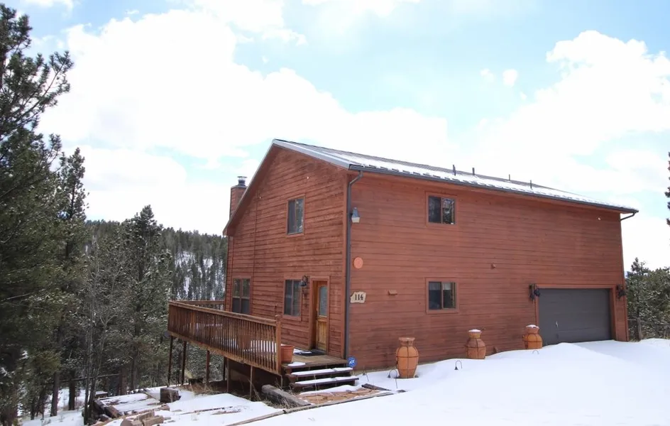 Welcome to this beautiful 4.21 Aces of rare horse property in beautiful Highland Lakes. Tucked away at the end of a quiet cul-de-sac is this 2 bedroom, 3 bath, 2 car garage home. Nicely landscaped with hillside views and a view of Pikes Peak from the wrap around deck. Kitchen is spacious with tile counters and floor along with a large center island. Wall of windows engulfs the main level living room/dining room inviting in the warm Colorado sunshine. Head on upstairs to 2 nice sized bedrooms both with walk-in closets and large full bath with laundry facility. Lower level encompasses a sunroom with built in hot tub, large family room, wood stove, wet bar, plenty of built in shelving, and bath. Enjoy mountain living here!