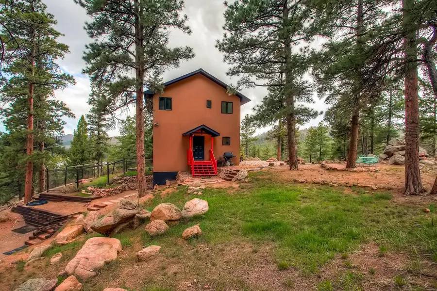 This 1 bed, 1 bath, home on 3 wooded acres with a private lake is in immaculate condition and offers excellent views of the surrounding mountains. The entire home feels quite large and the windows bring in lots of natural light and highlight the properties views of the wilderness. The owners suite is very spacious and has an impressive view of Pikes Peak. The Juliet balcony looks out at Thunder Butte, Bell Rock, and Pine Lake. The main level living room is large, open, and bright and It walks out to a patio area/fie pit.