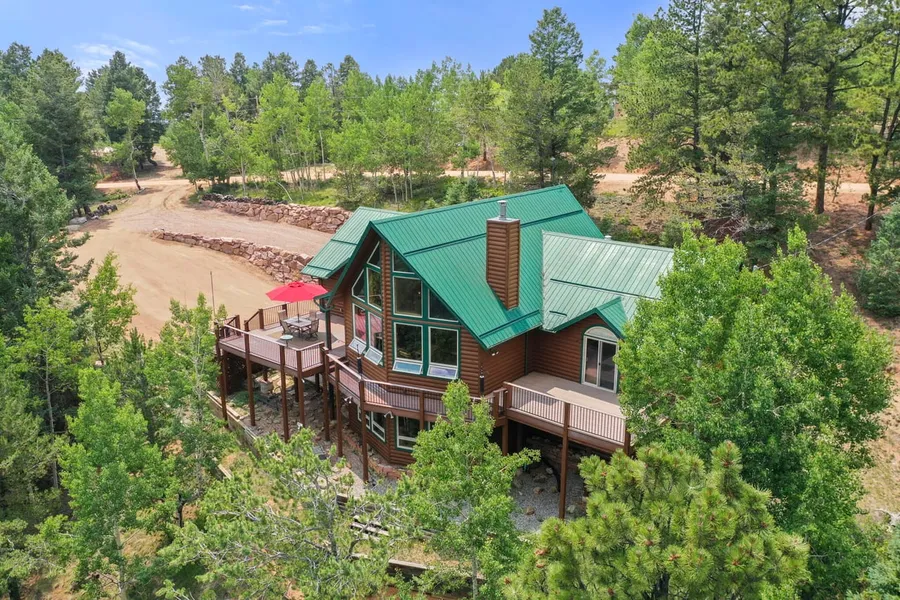 Nestled in the rugged beauty of the Pikes Peak region, this turn-key mountain home offers a perfect blend of tranquility and modern comfort. Situated on a spacious 3.2a lot, the 2,700+ square foot residence boasts four bedrooms and three bathrooms and a loft all designed to blend with its natural surroundings.