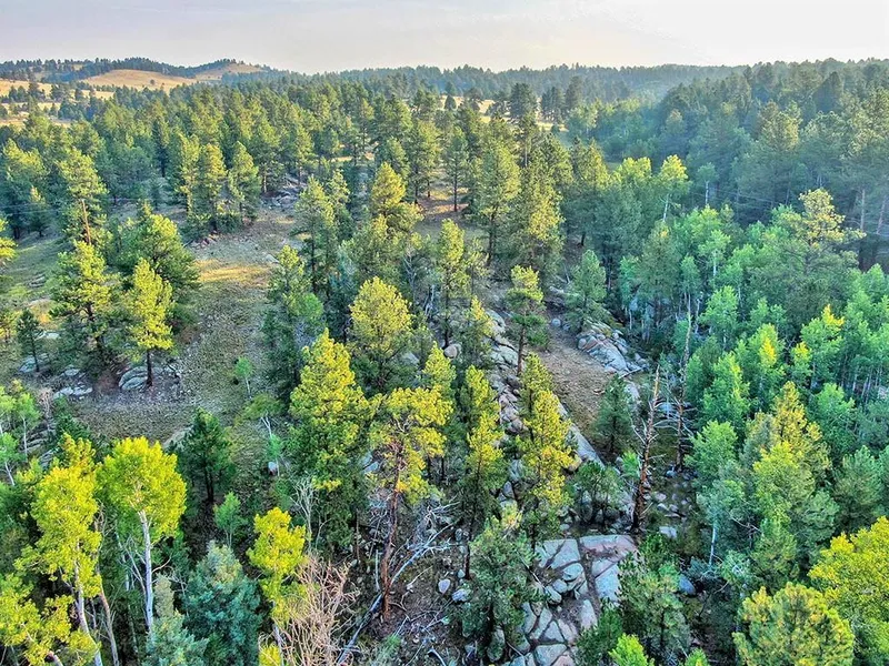 Enjoy the peace and quiet and take in the mountain views from this 56-acre parcel located an equal distance from the historic towns Florissant and Cripple Creek, Colorado. Agricultural zoning and no covenants, HOA fees or restrictions. Electricity extends through the parcel with a domestic well and septic system in place at the building site . Well and septic have not been connected to improvements and are being conveyed as is.LandThe topography of the parcel ranges from open, native grass meadows, pine, fir and aspen treed hillsides and (2) seasonal creeks that extend through the tract. The parcel also contains several rock outcroppings and a small pond fed by the seasonal creek (holds water most of the year). There are mountain views elevated portions of the tract looking southwest. With further extension of the existing access drive off-of Timber Mesa, an owner could select an alternate building site if desired.