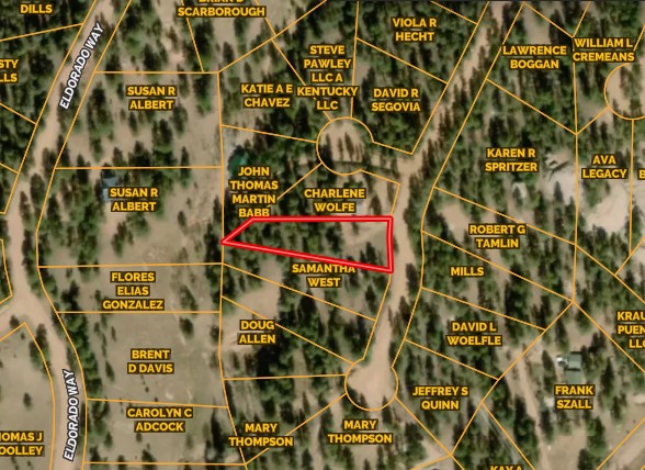 Yes! The slope and layout make it easier to plan construction. The soil includes dry grass, pine needles, and surface rock typical of the area. No heavy grading is needed. Several nearby homes are already built, and the area has a settled feel without being crowded.