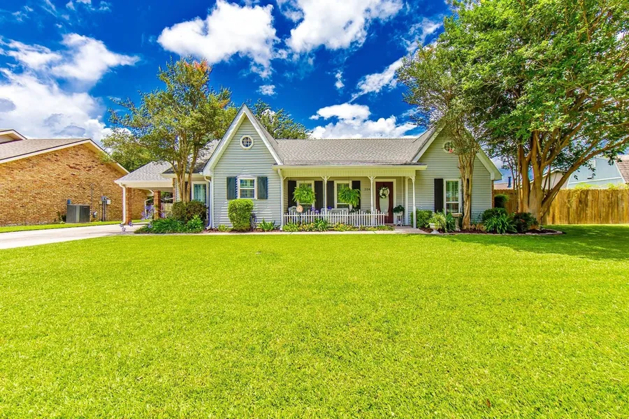 FLOOD ZONE X. NO FLOOD INSURANCE REQUIRED. WASHER, DRYER REFRIGERATOR AND ARMORE IN SUNROOM TO REMAIN. This beautiful landscaped cottage style home is located in a quiet neighborhood and has been extremely well kept and maintained. It features a large great room with woodburning fireplace, updated kitchen with appliances only 5 years old, breakfast room, formal dining, large master bedroom with new wood floors, large master bath with a new heater light, double vanities and a custom built shower. It also features a tastefully decorated sunroom that leads out to the covered patio beautifully landscaped and fenced. New Gaf Roof installed after Hurricane Ida. New windows installed with Window World and under warranty. A/C and Hot Water Heater is 6 years old. Workable storm shutters. Buyer to verify flood zone. All measurements are approximate and must be verified by a certified appra...