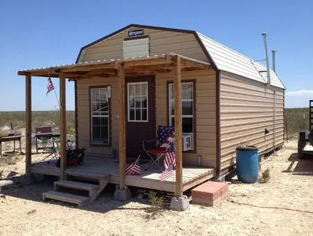 The cabin measures 14ft x 24ft giving you over 320 sq ft of living space. It is cooled with two window units and heated with one free standing propane heater. Most furnishings are conveying with the sale including a sofa sleeper, recliner, kitchen table and four chairs, refrigerator, and cook top. There is also a covered porch on the front that runs the full width of the cabin. The bathroom is hooked to a septic system giving you all the conveniences of home. Water to the cabin is supplied from a community well using 275 gallon water totes and a 12 volt pump. Electricity is provided by a propane generator. The 250 gallon propane tank is leased by the month.