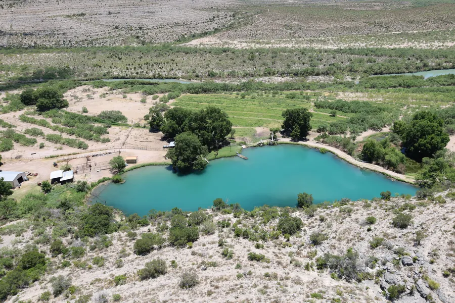 Well known as one of Terrell Countys proudest features, Banner Ranch boasts 2 springs and nearly 1.3 miles of river frontage. Because the ranch is south of Independence Creek and other springs that feed into the river, the water is pure and clean. The Banner Ranch truly is an oasis. The main spring flows at a steady 2,000 gallons per minute and has never been known to weaken under drought conditions. Water continuously flows from the spring into a beautiful historic reservoir built by men using mule teams and a mule drawn grader. Drainage pipes are in place from the reservoir to provide irrigation to approximately 18 acres of farmland that have been used to grow Alfalfa. Livestock production and hunting continue to be commonly held practices on the ranch.