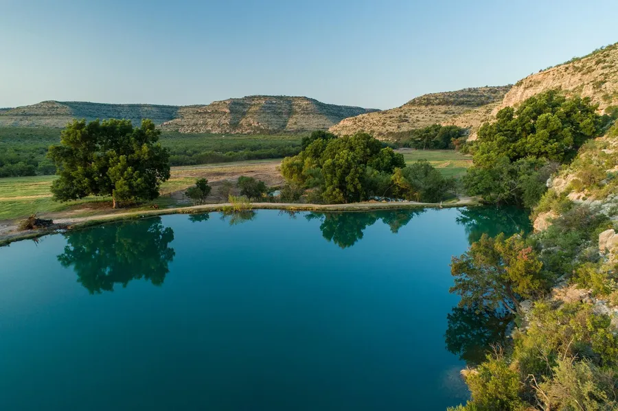 Sweetwater and Geddis are recorded huge Springs on the ranch that flow into the Pecos River. The lake and the spring runs provide miles of additional live water to the ranch. The 18 ac agricultural fields are watered by the 2,000 gal/min Sweetwater Spring where at one time the Banner family grew Alfalfa. There are unlimited opportunities to create orchards, vineyards, and gardens.