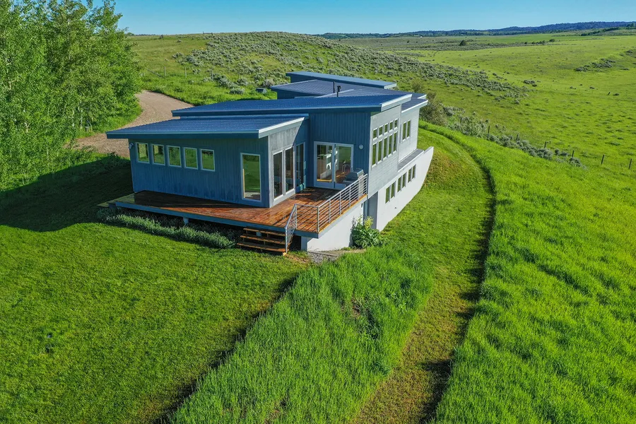 The open floor plan provides a spacious, airy feel and large windows offer stunning views of the Teton Range. A beautiful deck with panoramic views provides an additional area for enjoyment. The long driveway access from the property entrance adds to the privacy amid the pastoral rolling landscape.