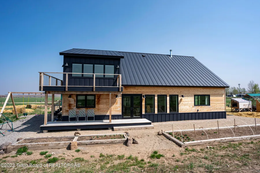 New high performance home on 2.51 acres with 4 bed/3 bath, an indoor climbing wall, mother-in-law suite, & large well-insulated shop/garage(1150 sq ft) for your toys. Enjoy the benefits of living in this thoughtfully designed & constructed 'healthy home'. Comfort & efficiency are provided by the double-stud insulated walls. The open family room/kitchen features vaulted ceilings & maple island for entertaining. Air source heat pump provides efficient heat and AC. Interior showcases custom cabinets, solid white oak wood floors, slate ceramic tile, & paper-stone countertops. Windows located for passive solar gain. Walk out on the back deck and enjoy Teton views. Private staircase entrance to a guest suite or nightly rental. Horses allowed. Only 14 miles to Driggs & 23 miles to Grand Targhee. Don't forget about the standalone workshop/garage for all of your projects and storage. Horses are allowed. Experience a fresh modern design in the countryside.