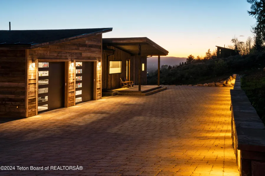 Nestled within the serene confines of the prestigious Shooting Star Ranch subdivision awaits a luxurious testament to mountain modern living. Poised atop 2.13 acres, this stunning residence offers a harmonious blend of contemporary elegance and rustic charm, promising an idyllic retreat amidst nature's splendor. Welcomed by the fully heated pavers & bordered by towering trees, step inside to discover a seamless fusion of modern aesthetics and timeless comfort. The heart of the home beckons with an open-concept kitchen & living area, where Quartz countertops gleam under the soft glow of ambient lighting & white oak wood floors adorn the main level. Custom cabinets offer ample storage for culinary essentials. Relax by the gas fireplace, while looking out the floor to ceiling windows at the wall of evergreens. Retreat to the primary bedroom, where another gas fireplace invites serenity & relaxation. Unwind in the ensuite bathroom, with modern fixtures and custom tile. Meanwhile, another living space & 3 additional bedrooms & 2 bathrooms on the lower level provide unparalleled comfort for guests or family members, ensuring everyone finds their own haven of tranquility. Step out onto the large deck where reclaimed barnwood siding & natural stone accents seamlessly blend with the surrounding landscape. Marvel at the panoramic vistas of the valley below, a breathtaking backdrop for al fresco dining. Indulge in the pinnacle of mountain living at this exquisite retreat in Teton Valley, where luxury meets tranquility in perfect harmony. With its craftsmanship, modern amenities, and unparalleled location, this mountain modern masterpiece beckons you to embrace a lifestyle of elegance and serenity.