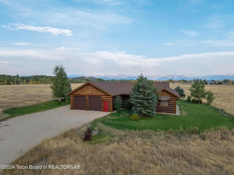 This beautiful 1,700 SqFt, 3-bedroom, 3-bathroom home sits on 19.2 acres in the rolling countryside of Felt, Idaho. With no HOA/CC&R's and conveniently located just 15 mins North of Driggs, this home is equidistant to Grand Targhee Resort and Ashton, affording its guests endless choices of outdoor activities in every direction. Hardwood floors and log accents give the home a cabin feel, while a stone propane fireplace adds warmth and coziness, and oversized windows display the breathtaking Teton views. Enjoy the large, attached two car garage with extra tall doors as well as an RV pad with electric and sewer hookup. Large, stamped concrete patios and manicured lawn ensure you never miss a chance to take in the beauty that surrounds this must-see home.