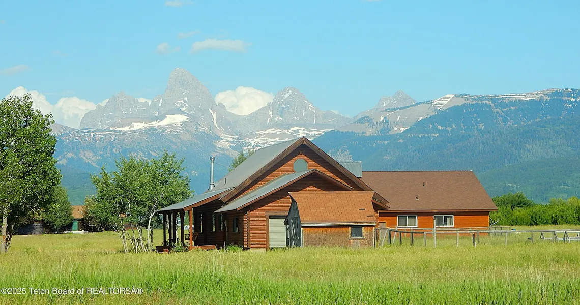 Enjoy Big Teton views & easy ski resort access from this 3 bed, 2 bath plus loft, log cabin-style home. Huge wrap around porch, quiet road and large 2.4 acre property combine to provide for exceptional outdoor living space. Large garage has room for all the toys to enjoy sun and snow in one of the greatest ski and mountain bike towns in the West! Exterior has been freshly stained and maintained, and the interior completely refreshed and move-in ready, including brand-new granite countertops, new stainless appliances & refinished circle sawn fir floors! Fresh paint & updated bathrooms feature stylish vanities, stone counters, and extra storage. New carpet adds warmth to bedrooms, while vaulted T&G ceilings, a wood stove, and extensive windows framing incredible views enrich the great room!