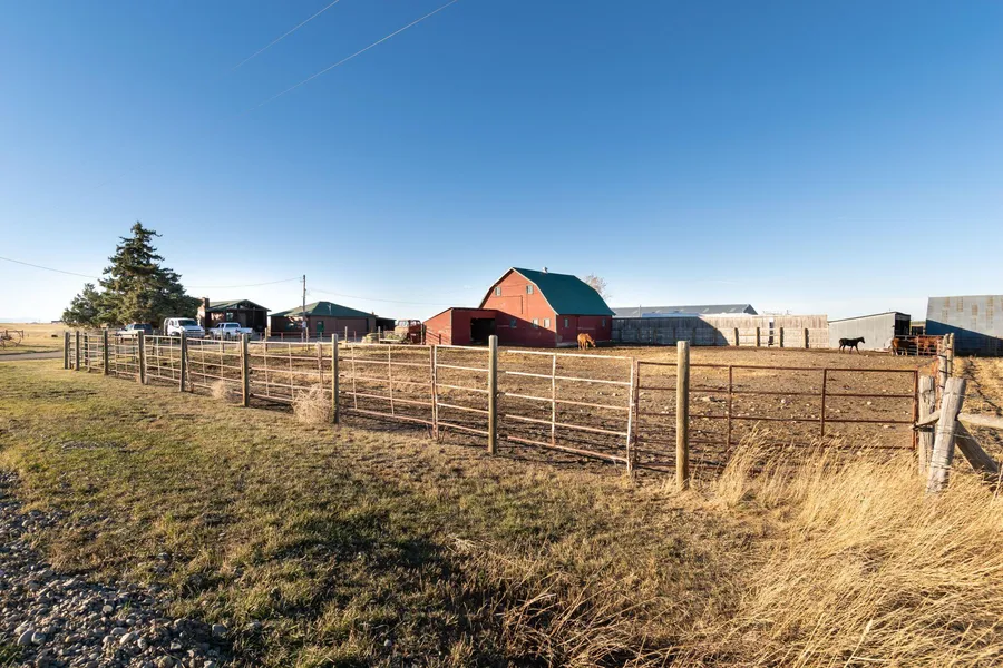 The OPPORTUNITIES are endless with this unique property. Currently being utilized as horse training facility. The 166 acres is dryland and producing alfalfa approximately 50 -75 ton annually. Muddy Creek runs year round through the pasture. Excellent horse facilities including a round pen, 120' X 240' outdoor arena, 60' X 212' indoor arena with tack room and an attached 36' X 60' loafing shed with 8 stalls. There is a separate barn with corrals along with a quonset. The home has newer roof, siding & windows. The 5 bedroom, 2 bath home has plenty of space for guests or hunters. The great room has character throughout with a bar, wood fireplace and vaulted ceiling which makes it great for entertaining. Come see this once in a lifetime opportunity. Also listed under MLS#22017590