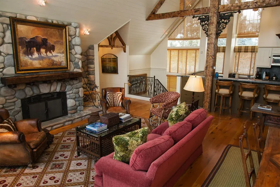 Completely remodeled in 2000, this charming cluster home in Teton Pines is located on a private treed perimeter lot with a seasonal stream and views of the Teton Range. The attention to detail in this residence is exceptional with beautiful woodwork, hickory flooring, custom iron railings, forged fireplace doors, and hand hewn timber beams in the great room. Two comfortable guest bedrooms with full modern bathrooms and an office are located on the ground level. The second floor master wing has multiple closets, a cozy fireplace framed by built-in bookshelves, dressing area and vaulted ceilings. Entertain friends and family in the great room that opens onto a large private deck. Minutes from skiing, golf, the bike path, Grand Teton National Park and the amenities of the Westbank Center