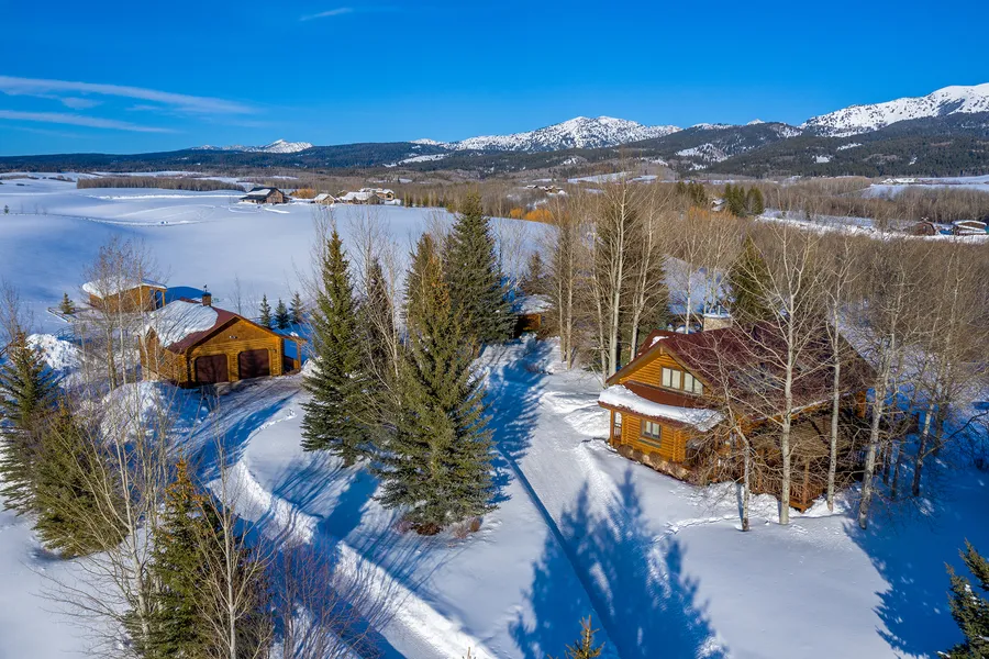 Ideally located wonderful 30 acre horse property on State Line with big Teton views. Two bedroom, two bath main house, one bedroom guest house and horse barn with equipped stalls, tack room, storage and office area. Live water and pond for on property fishing and enjoyment. Wonderful heated pool for year round use.