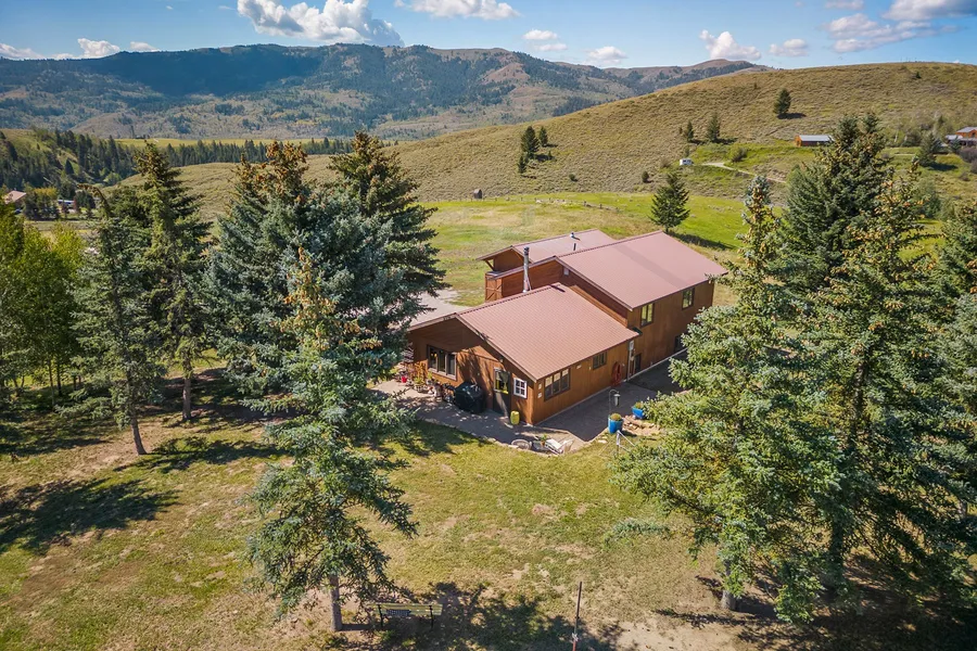 Perched atop a knoll south of the town of Jackson in Game Creek, this private residence set on nearly 5 acres enjoys nearly 360-degree views of the surrounding peaks including Munger Mountain and beyond to the Snake River Range. The 3-bedroom, 2-bath main home features abundant natural light with a generous living area and newer appliances in the kitchen. In the colder months, a wood-burning stove provides warmth and ambiance. During the spring, summer, and fall, an expansive patio provides ample outdoor living space to gather with friends and family.