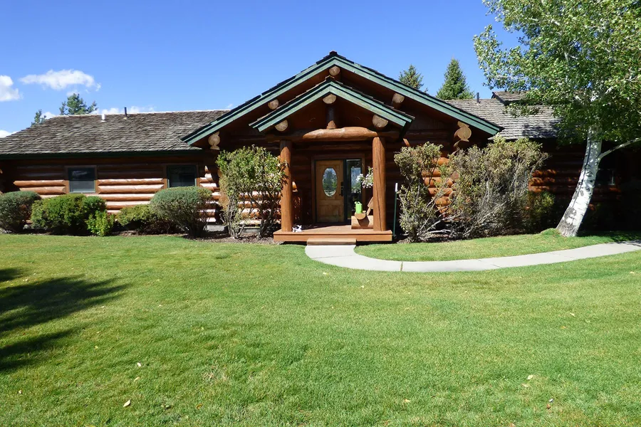 Excellent horse property on SW side of Moulton Ranches Subdivision, five minutes to the airport, and 20 minutes to Town, spectacular views: Grand Teton & whole Teton Range, ski resort, Sleeping Indian. Classic log home on 2.54 acres. Big Canadian Douglas Fir logs, four bedrooms, four bathrooms, wood floors. West side sunroom/hot tub off the primary bedroom. Open floor plan, aesthetic log designs highlight, straight-on views of Grand Tetons out N facing large windows, wrap-around decks, walkway, mature landscaping, flower garden, large oversized three car garage/horse tack & carpentry rooms/big storage areas. Recent remodel, new appliances. Must see.