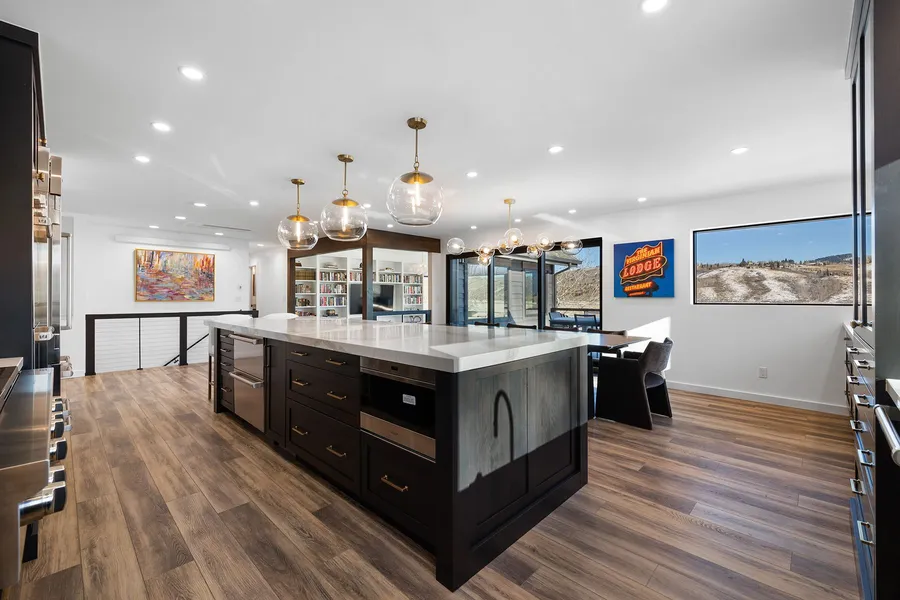 Highlighted by its own office, a floor-to-ceiling gas fireplace and in-floor heat in the bath, the primary suite enjoys the same dramatic views east toward the Wyoming sun...