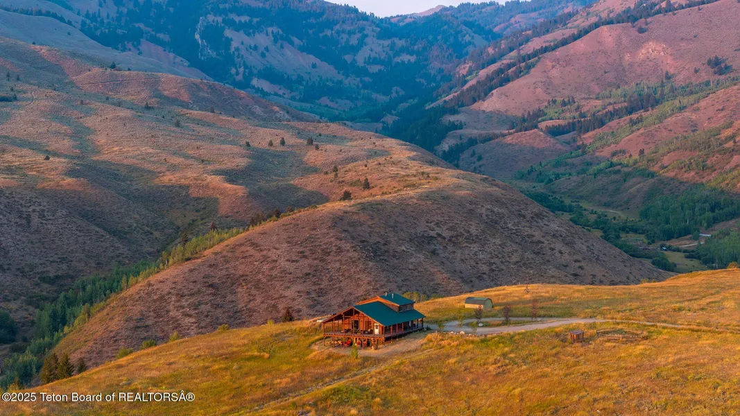 Wildhorse Lodge - 13.91 acres with sweeping views of the Gros Ventre & Snake River Range which is all part of the Southern Teton Range. Major remodel in 2023 blends restored hand-hewn logs with modern finishes. 3,600 sq. ft. includes, a spacious kitchen with quartz & butcher block, great room with elk horn chandeliers, and a spa-like primary suite with soaker tub & in-floor heating. Finished walkout lower level with 2 bedrooms, living area, pellet stove, and private entrance. Most furnishings included. Existing footers for garage or outbuilding. A rare opportunity for luxury, privacy, and Wyoming beauty.