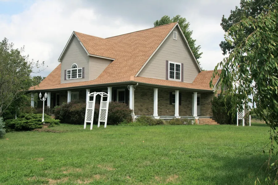 468 acres for sale in Texas County, Missouri. 65 acres open grass with balance in timber. 5BR/4.5BA home on site with scenic view of farm. Features include nice big kitchen with main floor office and master suite. 2 BRs & full bath located in second story. Basement fully finished with additional beds/baths, kitchen, bar, family room and office. Detached 5 bay garage, 3 bay garage with living quarters, 3 BR guest house, and machine shed also on site. Loaded with deer and turkey. Spring on south side of property. Well and power on NE corner. 50 miles South of Rolla. 1.5 hours East of Springfield. 3 hours SW of St. Louis.