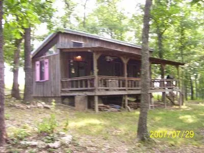 HG1491 THIS PLACE HAS IT ALL! Creek, spring, cave, bluff, and boulders make this all wooded 6 acre m/l tract one of the prettiest around, BUT THERES MORE! Charming rustic cabin is suitable for seasonal or full-time living; youll find one-of-a-kind features that you need to see to believe. You will not want to leave the huge covered porch what a lovely place to spend the evening! BUT THERES MORE! The guest house, with its pretty wood floors, provides another bedroom, sleeping loft, and bath. The well, storage building, and remote, but accessible location will make this your favorite get-away place! $95,000. MLS#23521