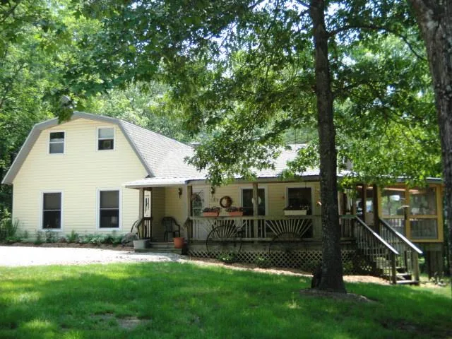 When you thought about retiring, did you think, stick me back in the hills all by myself? Here's the spot! 7 Acres privately nestled in the Ozark Hill country, with beautiful cottage style home, full wrap around deck(great for watching nature & listening to the creek below). Large Shop for puttering, plus 3 car garage, raised bed garden for growing your own veggies, several fruit trees!