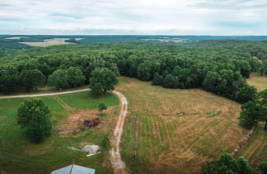Trees line the edge of a bumping and meandering gravel road with branches reaching overhead shading the red clouds of dust stirred by tires crunching along, turning this way and that, until reaching the gate of a property long untouched by the hand of man. Towering, broad, oak trees with deep ancient roots jut towards the sky beyond the property line, showering the earth below with tiny acorns, providing nourishment for wildlife while some search for a little spot of soil to call their own, paving the way for future generations of mighty oaks. The Mighty Oak Timber Stand is home to hundreds of mature oak trees, as well as walnuts and other mixed hardwoods, and with such an abundance of timber comes an abundance of wildlife as well. Seasoned whitetail bucks with towering racks wander through the underbrush, accompanied by strutting wild turkeys, quick darting rabbits, and squirrels twitching their tall bushy tails in warning. Truly an outdoorsmans paradise that I believe singer/songwriter Tyler Childers describes best in the lyrics “Ain’t no man hungry in the bounty of the middle ground” Nestled on the property sits a 1500 sq ft shop house, featuring 750 sq ft of living quarters, including a full kitchen, large bathroom, and large living area/ sleeping area combination. Many build sites are available and easily accessible on the property, with additional potential to subdivide certain portions for future sale if one desired. This is a rare opportunity to own a a true gem in the heart of the Ozarks.