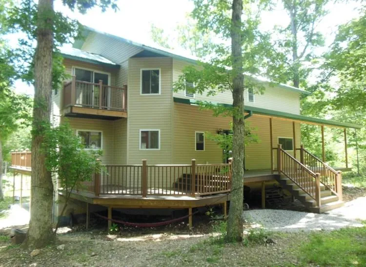 Awesome, luxurious 7 bedroom 2 story home on 4.25 wooded acres. Gorgeous greatroom with 18x20 living area, 17x20 dining area, exceptional 20x20 kitchen with cherry cabinets, stainless steel appliances, granite counter tops, island bar and a huge pantry. Hickory floors, main floor and upstairs. Tile downstairs in the full finished walkout basement. Loads of cabinet space, and closets. Sunny inviting family room. Office. Dual pane windows. R23 insulation in the attic. R 19 in the walls. Central electric heat with an outdoor wood furnace, too. Wrap around porches and decks. Large garden spot, fruit trees, greenhouse, storage shed, year round creek.