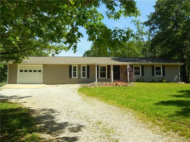 As you enter this adorable ranch home, you will notice the slate tile entryway and living room with hard wood floors, plus the custom tiled gas fireplace. Move on to the contemporary kitchen with maple cabinetry, industrial look backsplash, breakfast bar, awesome lighting and sleek black appliances. This home offers you two options for a master bedroom. One master provides a full bath (with shower) and the other offers a larger space with hard wood and a 1/2 bath attached. Don't need 4 bedrooms?? Use one as a family room or work out space! The covered back deck provides shade for those summer BBQ's while the kids and dogs play in the flat, fenced yard. There are TWO outbuildings, one is wired for electricity. Don't let the 1 car garage fool you, it is quite spacious measuring in at 25x18 and it even has a storage/hobby room in the back. Parking is a breeze on the circle driveway. Located less than 5 minutes from the South Gate of Ft. Leonard Wood!