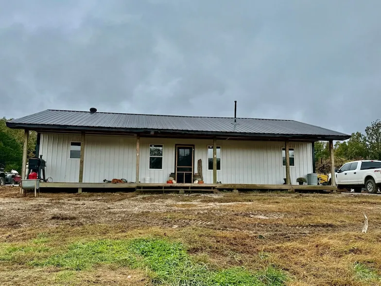 Secluded 4 bed, 2 bath farmhouse on 40 acres! Built in 2022 with a charming farmhouse-style interior. Open floor plan, jetted tubs, and a large covered front porch overlooking peaceful surroundings. Property features 3 ponds, partially cleared acreage, and RV electric hookup. Perfect blend of modern comfort and country living!
