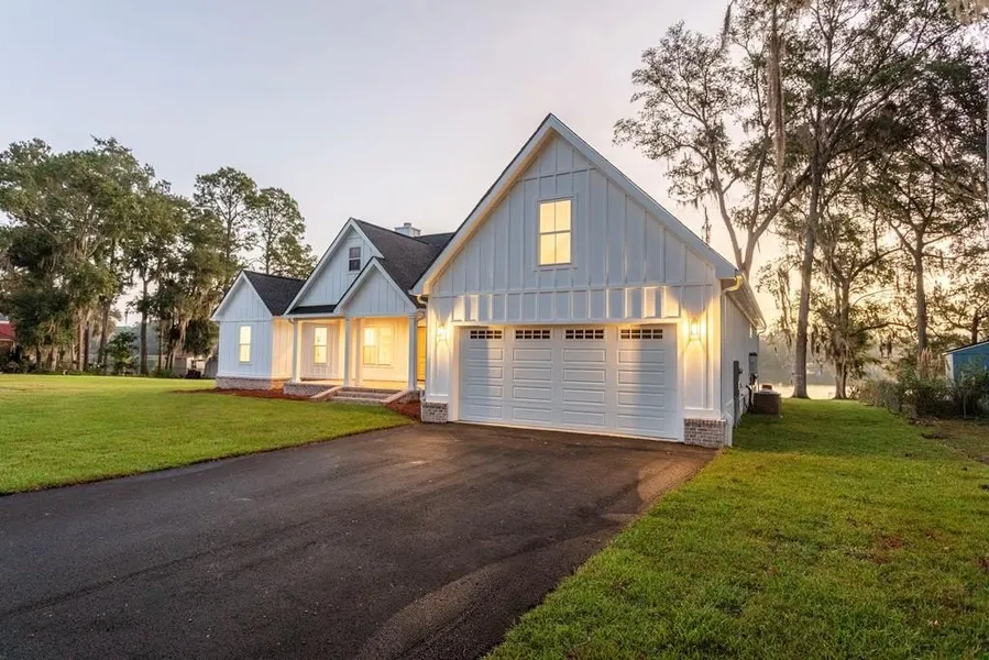 Breath taking new custom home - Lake front! This spectacular new, 2,461 Sq Ft 4 bedroom, 4 .5 home is like your own personal resort! Custom built with too many upgrades to list, perched on the banks of glistening Lake Riverside, just minutes from historic downtown Thomasville. Enormous fireside great room is open and drenched with sunlight and overlooks lake. Custom features include towering cathedral ceilings, two story brick fireplace with beamed accent and mantel board. Large open family kitchen and dining room, kitchen with custom cabinets and 3/8 bevel calacatta quartz counter tops, stainless steel appliances including, gas range with built in air fryer tray, pot filler, french door refrigerator with craft ice dispenser, smart wifi enabled dishwasher, Kohler Studio McGee faucets, fixtures and cabinet hardware, walk in pantry with icemaker connection and bountiful cabinetry, Separate laundry room with sink is adjacent to oversized two car garage. Each bedroom, features on-suite bath, 3 of the 4 bedrooms are on the main level, one is on second level for added privacy, and could even be used as a home theater or in-law suite. Main level primary suite is pre-wired for an electric fire place, and features luxury resort style bath and walk in closet. Custom interior finishes such as real pine craftsman doors, give a nod to the many rustic yet sophisticated features of this contemporary farm home. Outside, the .061-acre lot is professionally landscaped, and features an irrigation system that conserves water by using lake water to hydrate lawn! High end meachanics such as water filtration system, tankless water heater. The home has a gutter system, a large deck with Trex flooring and a spectacular view of the lake. This home is one of a kind with unmatched quality and attention to detail and is ideal for your forever home retreat !