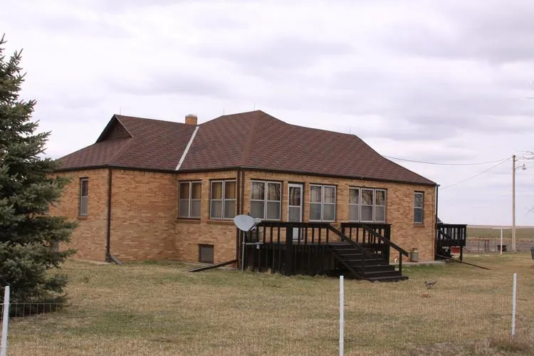 IMPROVEMENTS: This brick home has approximately 1,524 sq. ft with 5 bedrooms, 1¾ baths, full basement, and two (2) wood decks. This property has an excellent shelter belt and includes a 20’x30’ barn with 2) 8’ doors at boths ends, 34’x40’ granary w/20’x40’ 4-car garage with concrete floor, 6 feed storage bins in granary, 19’x40’ shed, well house, and 26’x64’ pole shed