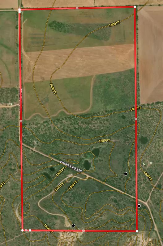 Cultivation (approx. 65 acres) and mesquite cover (approx. 51 acres) offer options to both the cattleman and game enthusiast located just under 2 hours from DFW. This mix allows for a balanced approach for crops or hay and cattle grazing rotation or game management. The native grasses and mesquite cover provide a perfect environment for grazing, and cover from the Texas sun. Two stock tanks ensure ample water supply.