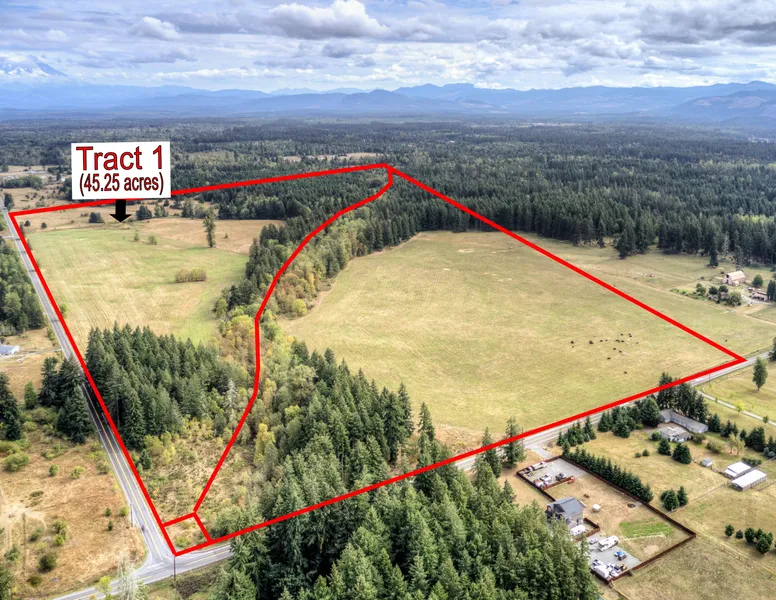 Yelm Farm Property 45.25 acres of the most beautiful pasture land with a spectacular Mt Rainier view--best in the area. Just south of downtown Yelm, easy to get to from Vail Rd SE. Farm and forestry property, zoning LTA (20-acre min). Ready to build a home, barn, and farm in your pasture/hay. Plenty of room to do what you want. Gopher study underway, Some wetland/stream. Paved street on north sides for you to choose your access for a driveway. Buyer to drill a well; soils look good for septic system, power & phone in the road, surveyed. Purchase to live on or segregate into two lots and sell one. Buyer to do new Ag plan or pay to remove at closing. Property segregation finalized - portion of tax #22608310000. Come see! Too much to list here. NOTE: See pictures for accurate view--this is only Tract 1 of this lot.