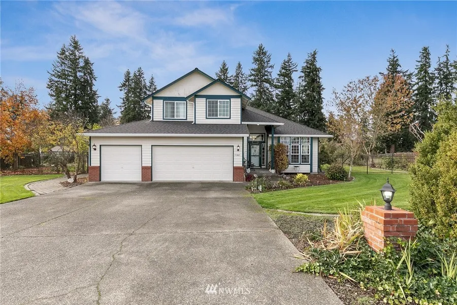 Well sought after neigborhood in Yelm. The flanking driveway lights welcomes you to this beautiful home. The Vaulted ceiling & marble tiled floors invites you into this 2297 sq.ft. home with 3 bedrooms, Formal living & Dining & Great room. The island kitchen features marble tiled floors, all appliances included & 2 pantries. The downstairs Den w/closet use as guest rm or office. Upstairs is an enormous master bedroom suite with a huge storage closet, a walk in closet plus a 5 piece bath. 2 additonal bedrooms & upstairs utility rm W & D included. Fully fenced acre lot professionally landscaped w/fruit trees. New Roof & Gutters. 3 car attached garage, 3 car carport w/shop, RV Parking plus a shed. No HOA. Enjoy the Mountain View. Welcome Home!