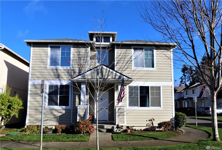 Highly desired 4 bedroom in popular Lakepoint cottages community will not disappoint. Open concept and 2 story living room makes this home feel comfortable with plenty of room. Updates were well thought out, newer laminate floors on main level, bedroom on the main floor, open kitchen with plenty of counter space and pantry area. Bedrooms are all large sized, King sized master suite with stunning shiplap accent wall, huge bathroom and walk in closet. Gas fireplace, back yard and patio are completely fenced in, close to park, trails, basketball courts, playground and more! Close to shopping, amenities, and JBLM.